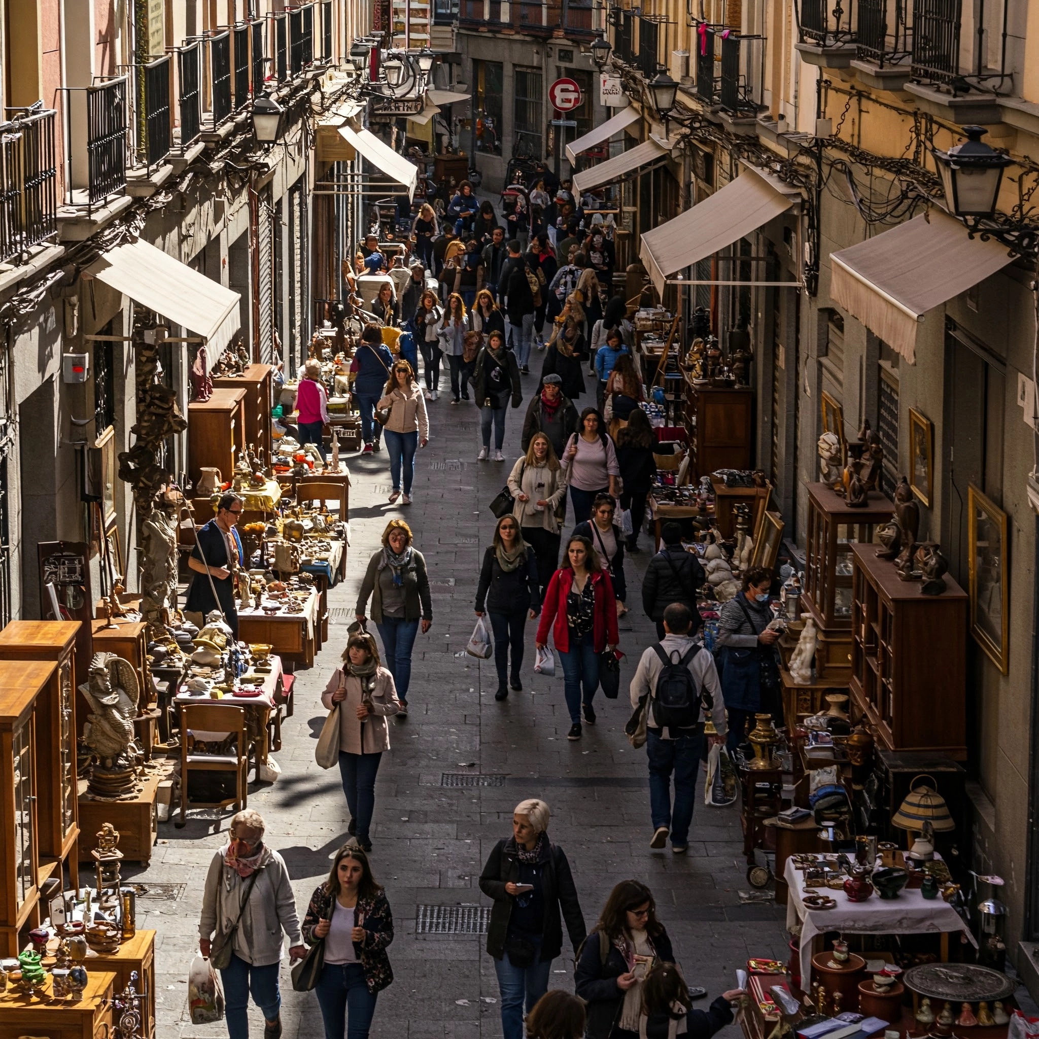 El Rastro: Sumérgete en la magia del mercadillo más famoso de Madrid, donde cada domingo podrás descubrir tesoros únicos y disfrutar de un ambiente inigualable.